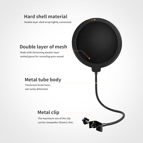 ADJUSTABLE GOOSENECK: The steel metal gooseneck holder fully supports the filter’s weight and keep it in place. You can adjust the angle and distance between the screen and the microphone to best fit your needs for yours lovely voice.